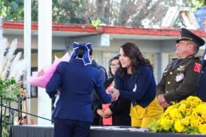 La diputada integrante de la bancada Verde en la LXXVI Legislatura Local, agradeció la invitación a este acto, institución en la que su mamá trabajó durante muchos años, por lo que reconoció el esfuerzo de todas y todos los que han sido parte de esta escuela, en la formación de miles de estudiantes.