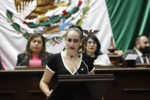 Al abordar la Tribuna, la diputada Sandra María Arreola Ruíz, destacó la importancia del acto en el que el Congreso del Estado entrega una de sus más altas distinciones, a una institución que encarna la vocación de servicio, la honestidad profesional y la defensa del Estado de Derecho.
