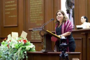 Morelia, Michoacán, a 15 de septiembre del 2025.- La presidenta de la Mesa Directiva del Congreso del Estado, diputada Giulianna Bugarini Torres, declaró de manera formal la apertura del Segundo Año Legislativo de Ejercicio Legal de la Septuagésima Sexta Legislatura del Congreso del Estado de Michoacán.