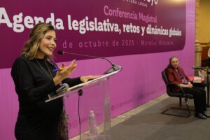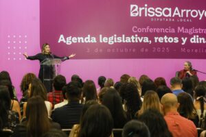 Morelia, Michoacán, a 03 de octubre de 2025.- La diputada local Brissa Arroyo, hizo un amplio reconocimiento a Marcela Lagarde, investigadora y feminista que ha visibilizado desigualdades históricas y quien impartió la Conferencia Magistral “Agenda Legislativa, retos y dinámicas globales”.