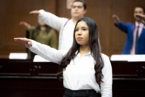 Morelia, Michoacán, a 30 de octubre del 2025.- Las y los 45 jóvenes integrantes del “Parlamento Juvenil Incluyente 2025”, participaron en la Sesión Solemne en la cual tomaron su respectiva protesta que los acredita como parlamentarios juveniles.