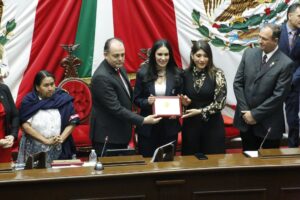 Luego de recibir la condecoración de manos del Presidente de la Mesa Directiva, Baltazar Gaona García, Adriana Contreras, originaria de La Ruana expresó que cuando una mujer avanza, avanza llegando consigo las ilusiones, las esperanzas y los sueños de muchas otras. “Hoy quiero decirle a todas estas niñas a las jóvenes y a las mujeres que están luchando por abrirse camino en su profesión en su comunidad, o en su vida: no dejen de creer en ustedes, los sueños sí se pueden lograr, pero se construyen trabajando con disciplina, preparación y valentía”.