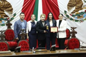 En Sesión Solemne, el Pleno del Poder Legislativo, junto con representantes de los poderes Ejecutivo y Judicial, hicieron entrega de una medalla como reconocimiento a la importante contribución de la cocinera Juana Bravo para mantener viva la comida tradicional michoacana, mientras que a Adriana Contreras, por abrirse camino en la alta dirección del futbol profesional.